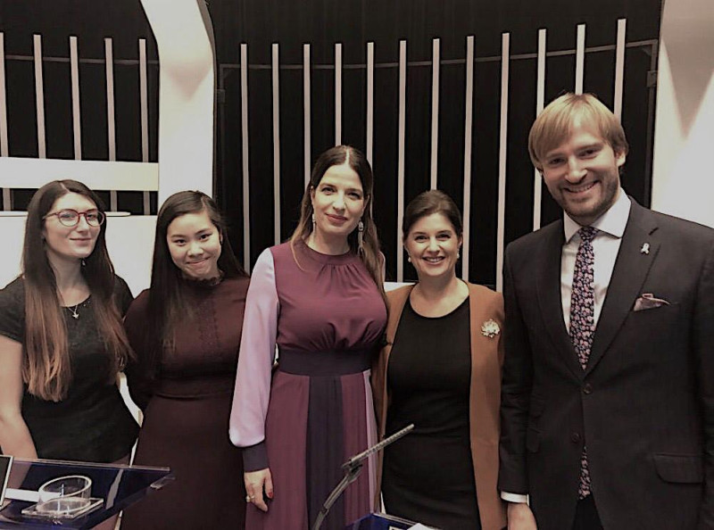 Jsme nečekaně přizvány na společnou fotografii všech účastníků, včetně pana velvyslance. Poprvé od začátku naší cesty jsme rozděleny slovy “you, intern, here!” 😢