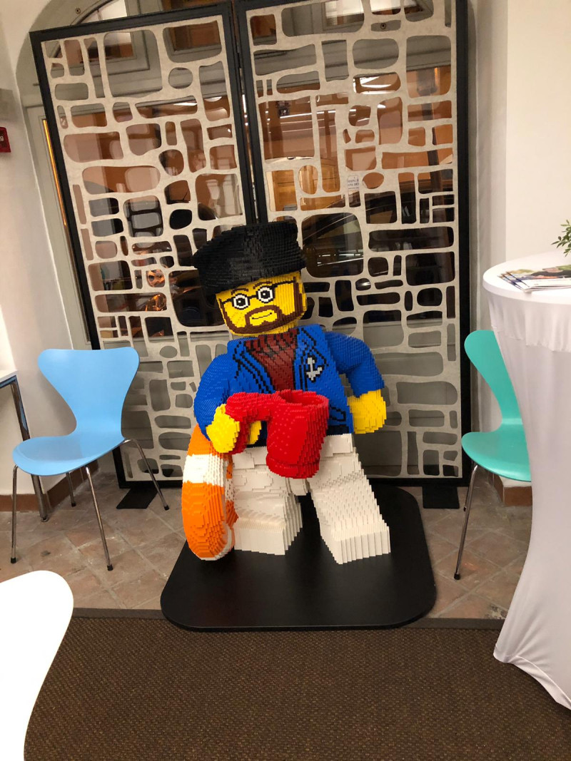 Po krátké poradě se opět vydáváme na cestu a poslední dnešní zastávkou bude Velvyslanectví Dánského království. Tématem setkání byla kardiovaskulární onemocnění diabetologických pacientů, kde po úvodním proslovu dánského velvyslance vystoupili s prezentací problematiky onemocnění zástupci České kardiologické společnosti pan profesor Linhart a České diabetoligické společnosti pan profesor Škrha. Následovala podnětná diskuze a už tak příjemnou atmofséru odlehčila ještě o něco víc socha z pravého dánského lega.
