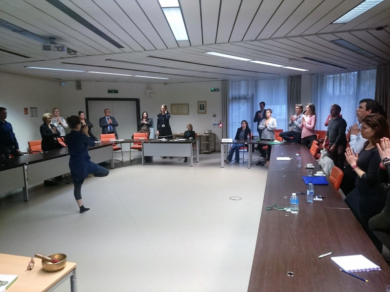 Čtvrtek je zvláštním dnem, jelikož v celém komplexu se koná takzvaný Tréninkový den. Máte tu možnost účastnit se různých akcí a tréninkových cvičení, většina z nich je samozřejmě zaměřena na audit nebo na management. Filipos už má bohužel plnou hlavu informacích a potřebuje si odpočinout od auditních záležitostí, tak si zvolil úplně odlišnou oblast: „Stress Management“.