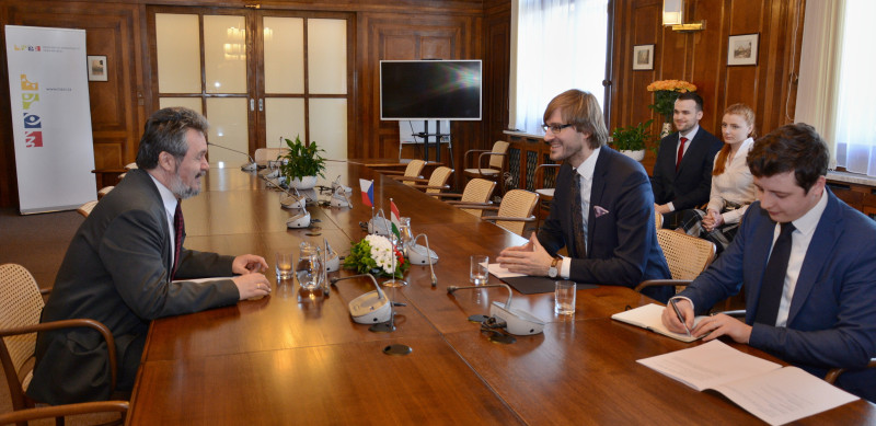 Den druhý. Hned z rána jsme byli na poradě vedení ministerstva, snažili jsme se vše vnímat a potají jsme si googlili všechny velké mozky u stolu. Jejich životopisy by vám určitě vyrazily dech, jako nám. Z porady jsme se přesunuli jen o místnost vedle, kde se konalo jednání se zástupci klinických psychologů v ČR. Ivana se tak měla možnost setkat se svojí vyučující z fakulty, která ji ještě ke všemu zkoušela z předmětu Klinická psychologie. Po ukončení jednání se opět přesouváme, tentokrát na setkání s velvyslancem Maďarska, panem Miklósem Borosem, které probíhalo ve velmi přátelském duchu.